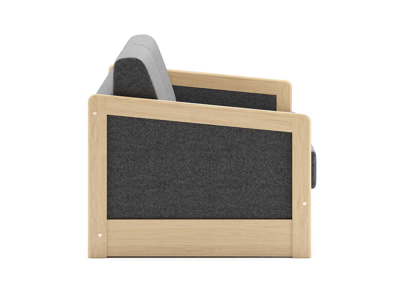 De slanke armlæn og de varme detaljer i bøg giver et let og hjemligt udtryk, mens det praktiske, skjulte magasin holder sengetøjet lige ved hånden. En funktionel og stilren løsning, der kombinerer æstetik, kvalitet og fleksibilitet i ét møbel.