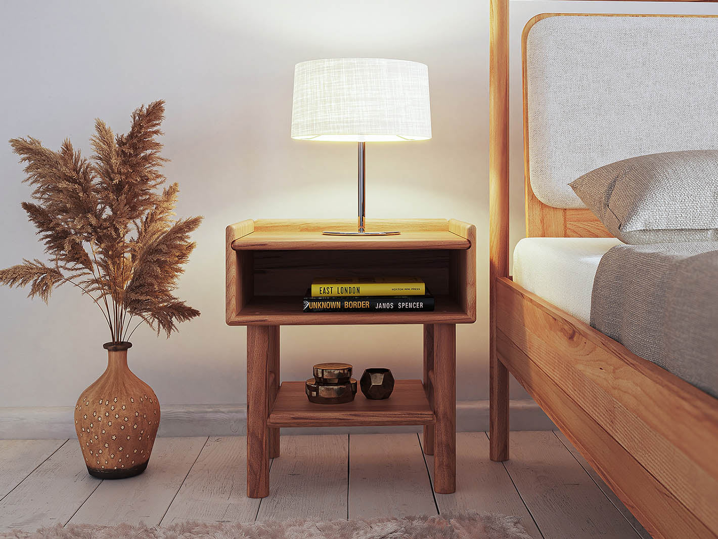 Lira sengebordet er er mere end et traditionelt natbord. Den aftagelige hylde, der fungerer som bakke, giver mulighed for praktisk transport af småting, drikkevarer eller bøger – perfekt til din morgenkaffe eller en aftensnack.
