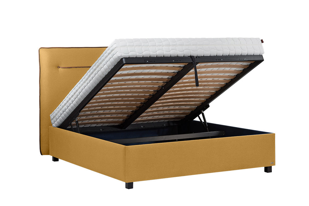 Sengen leveres inkl. ben men uden gavl og tilbehør i farven Mustard.